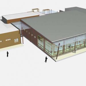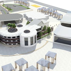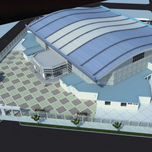 - 3 عدد رندر داخلی از همان سالن – سالن چند منظوره موجود در پروژه با تاکید بر نورگیری ها و تهویه ها و سازه سقف
